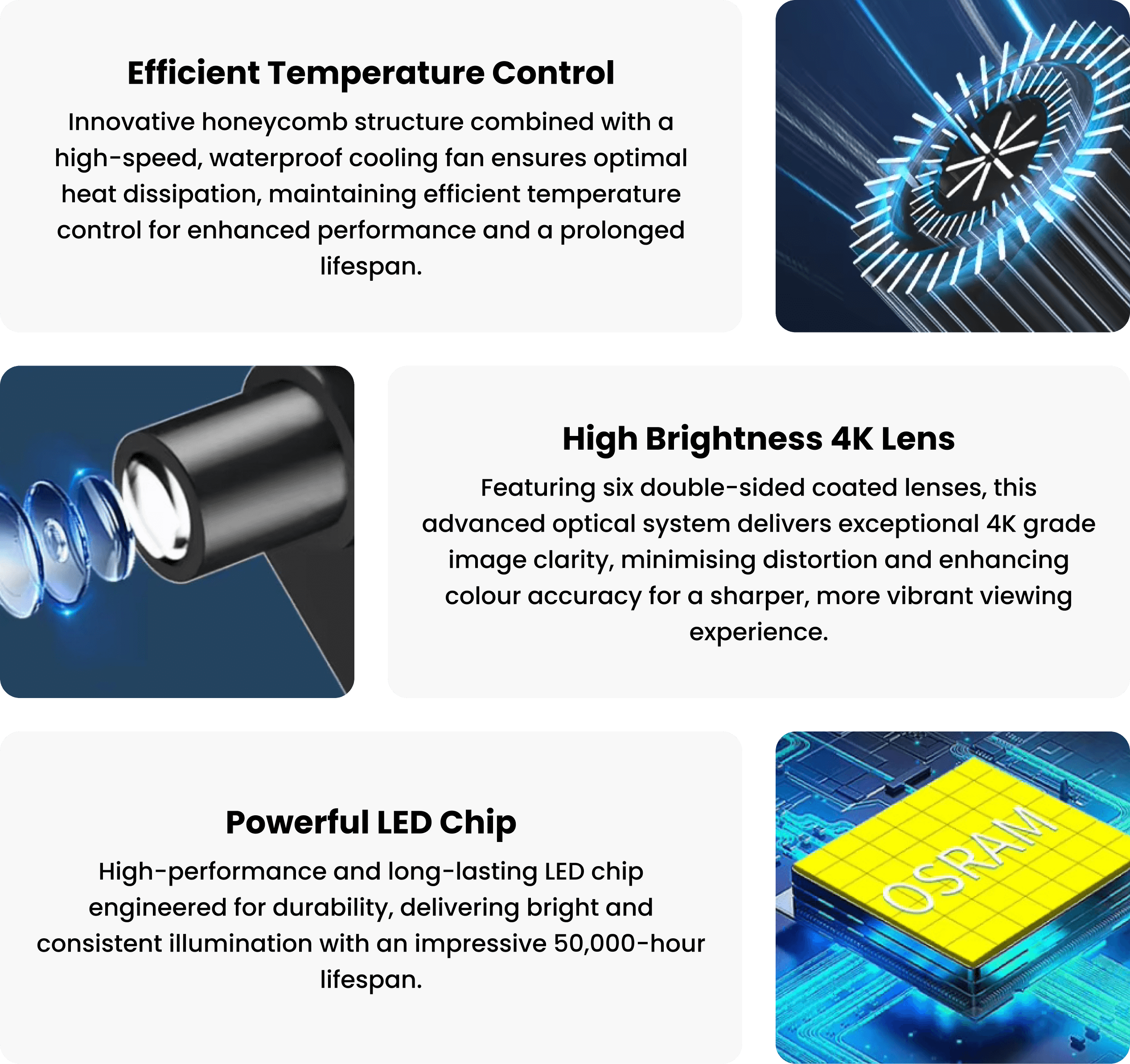 High-Resolution 4K Lens - Dual-coated optical lenses provide exceptional image clarity and color accuracy for premium-quality visuals.